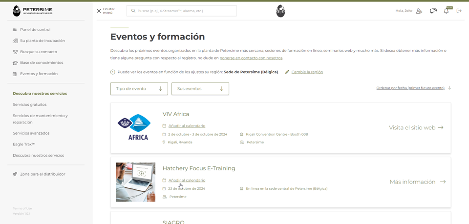 Estas actualizaciones reflejan el compromiso continuo de Petersime de mejorar su experiencia y proporcionarle herramientas que hagan que sus interacciones con nosotros sean más eficientes y gratificantes. Le invitamos a explorar estas nuevas funciones y ver cómo estamos evolucionando para satisfacer mejor sus necesidades. Manténgase al día mientras seguimos innovando y mejorando nuestros servicios.