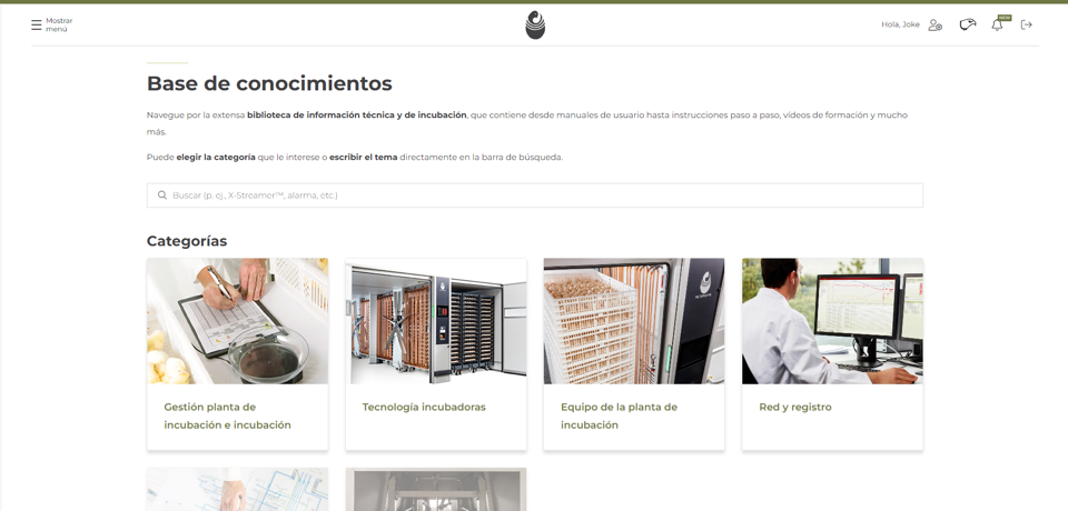 La función para encontrar información en la amplia base de conocimientos es ahora más fácil de utilizar. La función de búsqueda actualizada le permite localizar rápidamente lo que necesita sin tener que navegar por varias capas (gestión de plantas de incubación e incubación, automatización, sistema de climatización de plantas de incubación, etc.). Solo tiene que introducir su consulta en la barra de búsqueda y obtendrá acceso instantáneo a la información relevante.